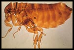 Fleas are the most common transmitter of the rare Bubonic Plague. They also transmit the bacterial disease murine typhus to humans through infected rats. Their saliva can cause serious Flea Alergy Dermatitus in pets, and their debris has been reported to cause similar allergic reactions in humans. Fleas can also transfer tapeworms and cause anemia in pets. Flea bites commonly cause painful, itchy red bumps.
